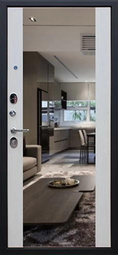 Надежная входная Дверь Вектор с зеркалом премиум класса по цене 49 965 руб. Большая толщина стали защитит от проникновения в ваш дом, квартиру или коттедж. Используется очень качественная фурнитура: замки, цилиндры, ручки, защелки. Покрытие и отделка двери изготовлено под внимательным контролем производителя. Дверь имеет долгий срок службы и гарантию.